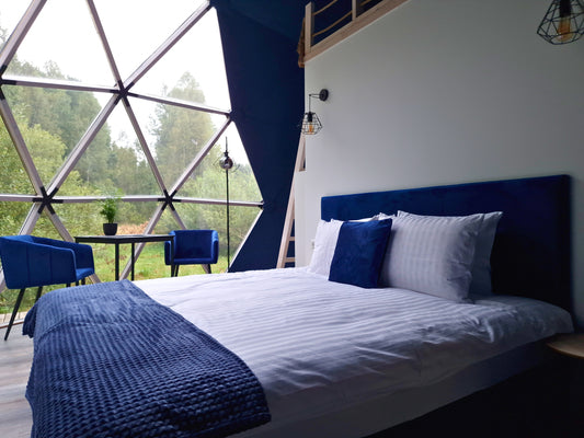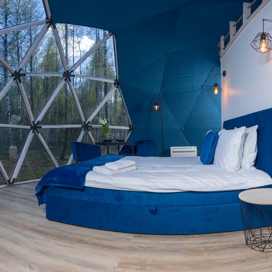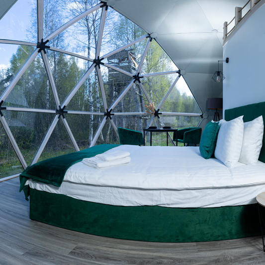 Mūsų kupolai yra specialiai suprojektuoti ir sukurti, siekiant suteikti Jums ypatingą ir komfortišką patirtį miške. Jie yra pagaminti iš tvirtos ir ilgaamžės medžiagos, kuri atlaiko įvairias oro sąlygas, ar tai vasara, ar žiema - kupolai tiks visoms oro sąlygoms. Kupolai yra erdvūs, su dideliais langais, kad galėtumėte mėgautis nuostabiu gamtos vaizdu ir žvaigždėmis. Juose taip pat yra miegamojo, virtuvės ir dušo, bei tualeto patalpos.